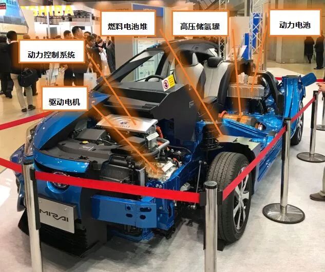 Mirai的驱动系统包括高压储氢罐、动力电池、燃料电池、升压电路、驱动电机和动力控制系统。