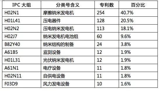表3 纳米发电机全球专利IPC分类